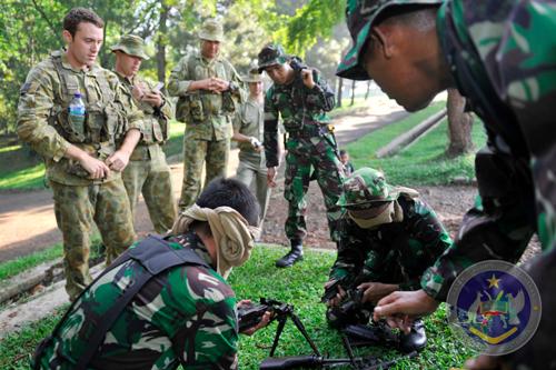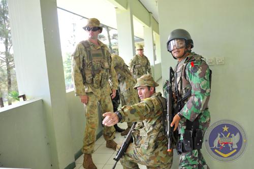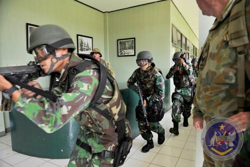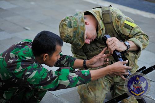 Tahun ini, JOCIT dibagi dalam dua tahap. Pada tahap pertama, Junior Officer Combat Instructor Training – Indonesia (JOCIT – I) baru saja diselesaikan oleh 93 Perwira Pertama dan Bintara TNI-AD, dimana mereka menjalani Urban Warfare training yang intensif selama 12 hari di area pelatihan Pusdikif di Cipatat 7 – 18 Mei. Para peserta TNI-AD dipecah menjadi tiga peleton yang masing-masing dibagi dalam tiga regu, dimana tiap regu memiliki pelatih dan ahli bahasa dari Australia. Peserta Australia yang terdiri dari 23 pelatih, ahli bahasa dan staf dari Combat Training Centre – Jungle Training Wing (CTC-JT) tersebut dipimpin oleh Mayor Jim Masters. Setiap regu juga memiliki pelatih dari TNI-AD yang sudah mengikuti pelatihan JOCIT di Australia. Pelatih TNI-AD bekerja bahu ke bahu sama pelatih CTC-JT. “Pelatih dari TNI-AD bekerjasama secara erat dengan pelatih saya, dan hal ini sangat membantu” ucap Mayor Masters. | |