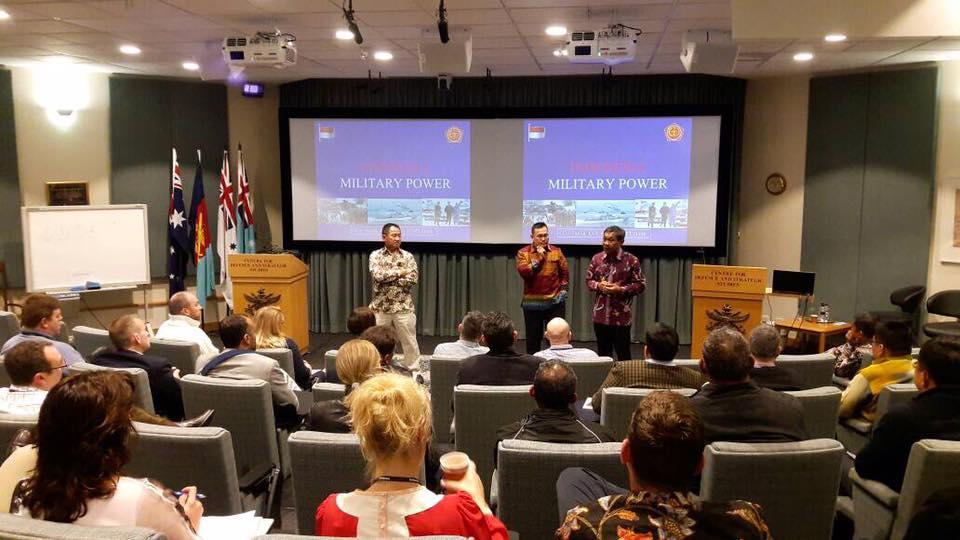 | Presentasi terakhir dilaksanakan secara bersama oleh pasis Indonesia di DSSC yaitu Kol Kav Taufik Budi Santoso, Kol Laut (P) Didik Kurniawan, dan Kol Pnb Benny Koessetianto tentang “Indonesia Military Power” sesuai dengan materi yang diberikan oleh Lembaga. Rencana pada akhir Juli 2017, sebagian pasis Australia akan melaksanakan Field Application and Research Visit (FARV), semoga mereka mendapatkan pengetahuan lebih mendalam tentang Indonesia selama kunjungan nanti. | |